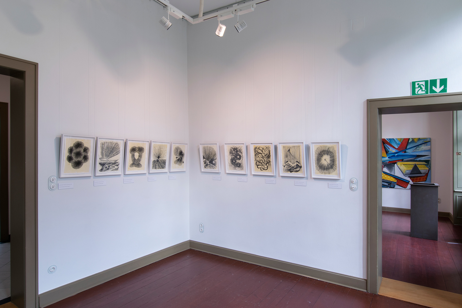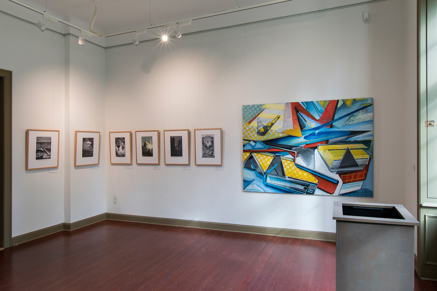 Jens Hanke verarbeitet in seiner Kunst literarische und cineastische Quellen, die Bilder in seinem Kopf entstehen lassen. Seine aus verschiedenen Eindrücken und Einflüssen resultierenden Arbeiten wirken aber nicht illustrativ oder direkt abhängig von konkreten Vorlagen. Auch seine hier ausgestellten Arbeiten sind ursprünglich nicht in Bezug auf Jules Verne entstanden! Vielmehr lauscht er auf das Echo, das seine Erinnerungen an Gelesenes oder visuelle bzw. akustische Eindrücke als „synapsale Nachbilder“ bei ihm hervorrufen. In seinen Werken beobachtet er aufmerksam die Resultate dieser geistigen wie neurophysiologischen Verarbeitung und übersetzt sie in sehr eigenständige Gestaltungen.