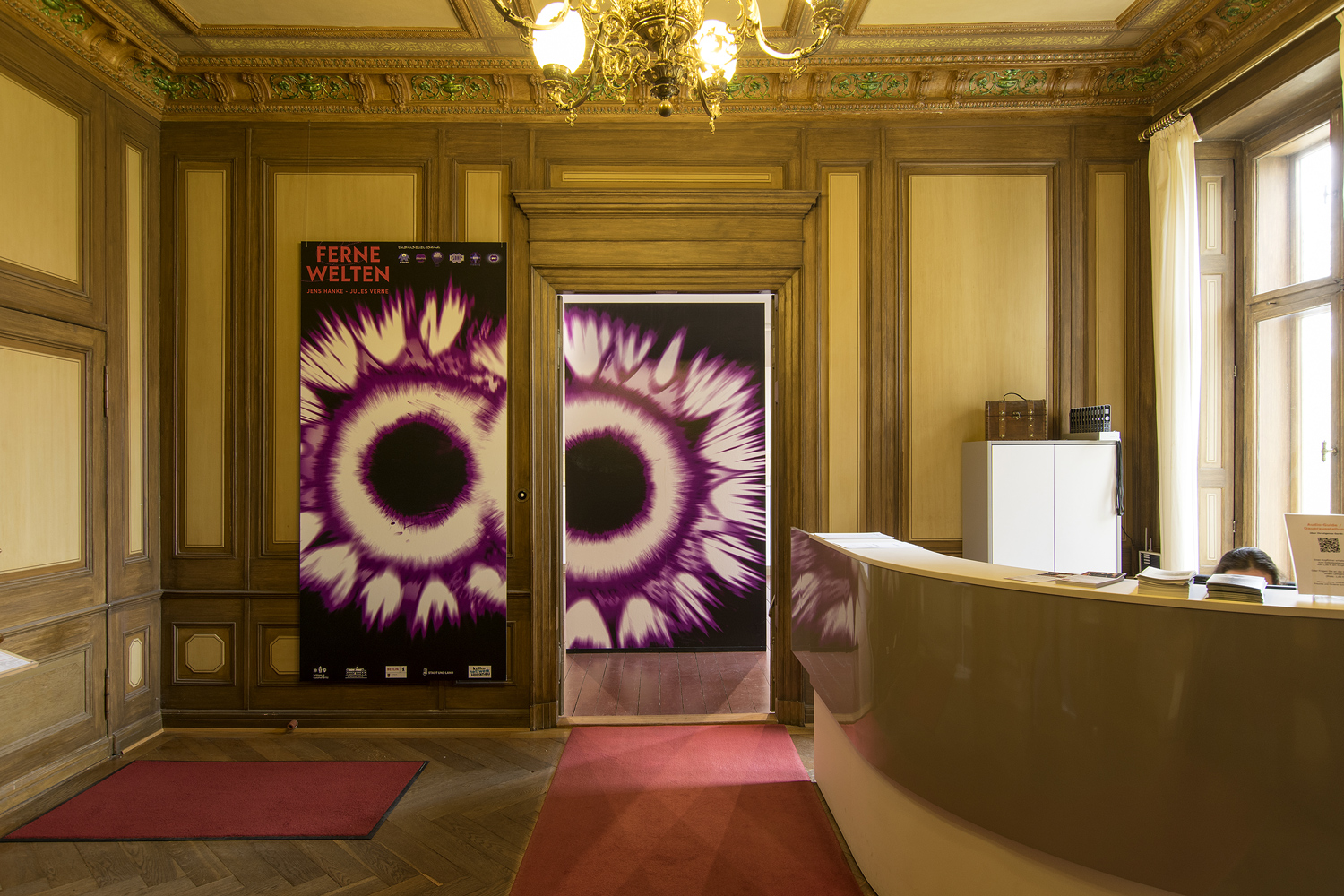 In sechs Räumen der Sonderausstellung und mit ausgewählten Interventionen in den historisch möblierten Wohnräumen von Schloss Britz entsteht ein Amalgam aus der literarischen Ideenwelt Jules Vernes und dem Kunstschaffen von Jens Hanke. Dabei arrangiert der zeitgenössische Künstler seine Gemälde, Zeichnungen und Objekte zu Themenfeldern, die für den „Wissenschaftlichen Roman“ des ausgehenden 19. Jahrhunderts und speziell für das literarische Schaffen Vernes charakteristisch sind. So erschließt sich die Ideenwelt und Mentalitätsgeschichte der Gründerzeit durch eine moderne Kunstausstellung.