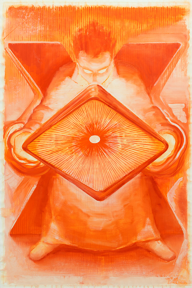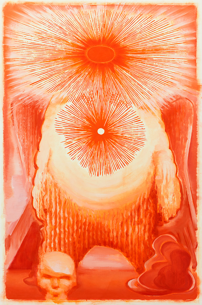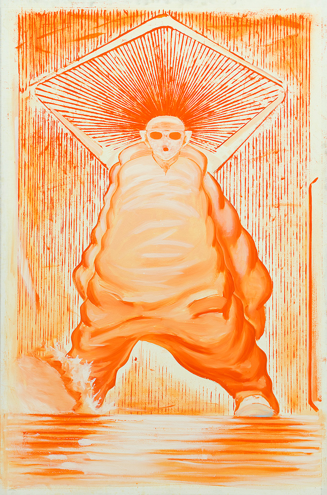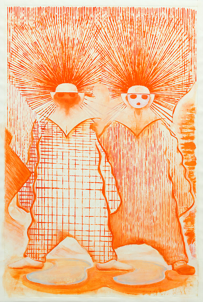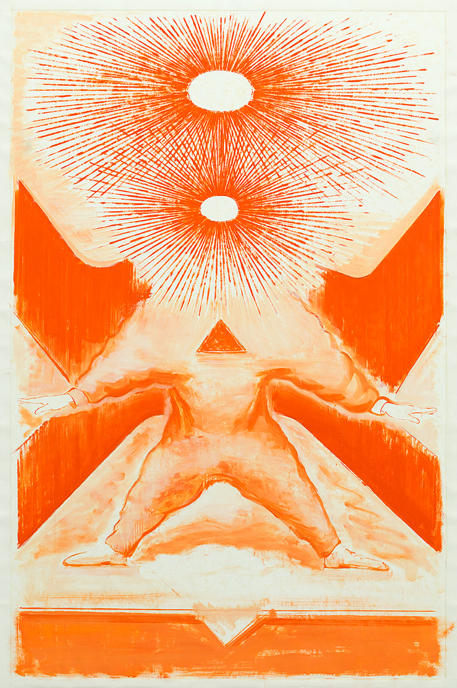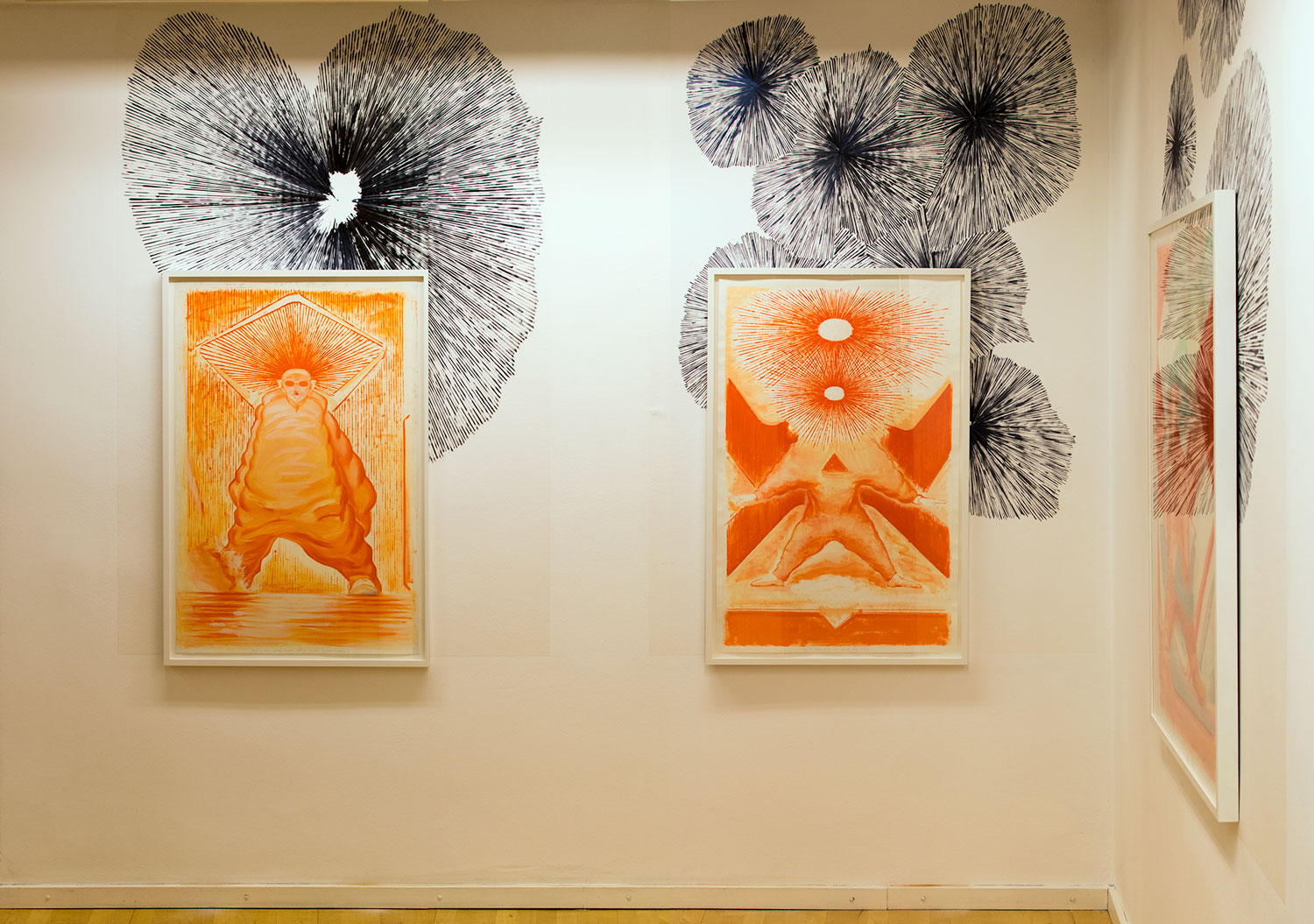 Es sind Arbeiten auf farbig grundiertem Papier im Format 120 x 82 cm.